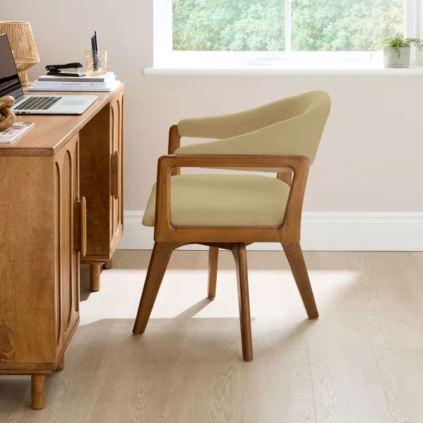 Enhance your workspace with the Hugh Swivel Base Office Chair. Designed for comfort and flexibility, it features smooth 360° rotation, adjustable height, and ergonomic support. Its sleek design and durable construction make it perfect for home offices or professional workspaces seeking style and functionality.